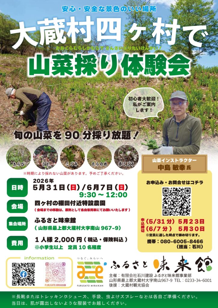 日本の棚田百選「四ヶ村(しかむら)の棚田」で山菜採り体験会を開催します!棚田の美しい景色を見ながら、初心者でも安心して楽しめることができる体験会です。ぜひ、ご参加ください。