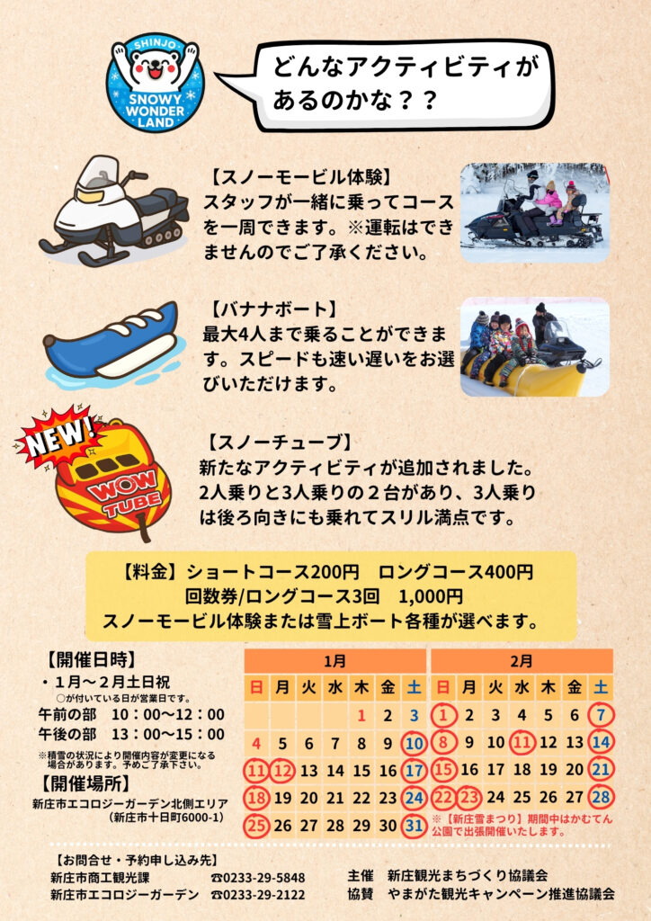 スノーモービルやバナナボート体験をぜひお楽しみください。