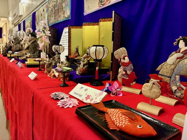 子どもたちの手づくりのつるし雛を展示しています。4月3日はお抹茶を楽しめます。
